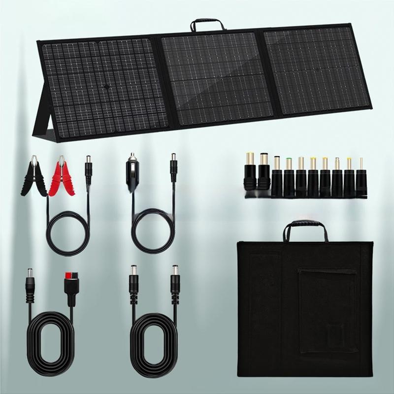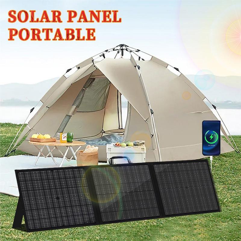 De draagbare zonnepaneellader van 100W is ontworpen voor outdooravonturen, reizen en noodstroomvoorziening. Hij is gebouwd met zeer efficiënte monokristallijne siliciumzonnecellen en levert betrouwbare zonne-energie, terwijl hij lichtgewicht en gemakkelijk te vervoeren blijft. Dankzij het driedubbele ontwerp kan het paneel worden uitgeklapt tot een groot oplaadoppervlak en compact worden opgevouwen voor opslag. Met meerdere uitgangsinterfaces, waaronder USB, USB-C en DC, ondersteunt het het opladen van smartphones, tablets, camera's, drones en draagbare energiecentrales. De IP65 water- en stofdichte constructie zorgt voor betrouwbare prestaties in wisselende buitenomstandigheden.