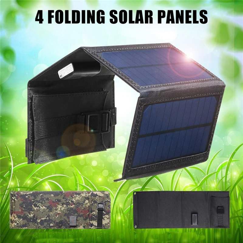 • 10W opvouwbare USB-zonnelader/powerbank met 4 panelen - draagbare zonne-acculader voor buitengebruik voor telefoons en noodgevallen