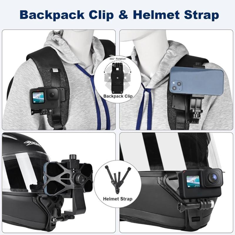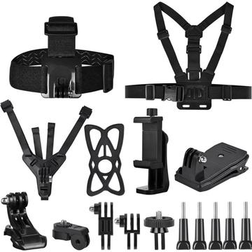 11-in-1 accessoirekit voor GoPro-actiecamera's - hoofdband, borstharnas, kinbevestiging, rugzakclip en telefoonhouder