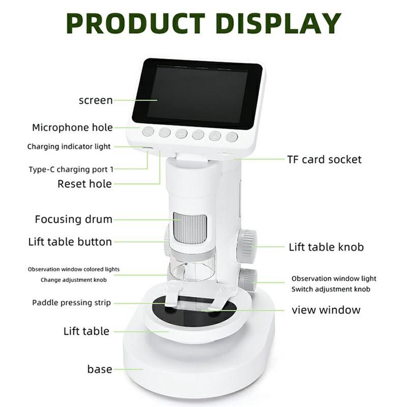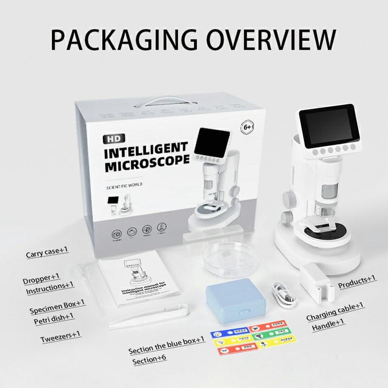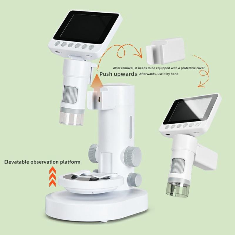 • Kids Digitale Microscoop 1000X / 2-in-1 Handheld & Desktop Microscoop met 3,5-inch HD-scherm en objectglaasjesset