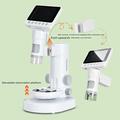 Dankzij het veelzijdige ontwerp kan de microscoop worden gebruikt als een handheld apparaat of worden gemonteerd op het bureaustatief. Deze flexibiliteit maakt hem geschikt voor verschillende activiteiten, van het van dichtbij bekijken van objecten tot het observeren van stabiele objectglaasjes.