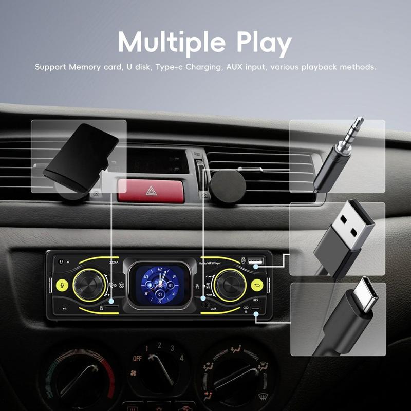 Geef uw dagelijkse rit een upgrade met de 2027A Single DIN-multimediaspeler voor in de auto, ontworpen voor eenvoudige bediening, beter geluid en moderne connectiviteit. Het 2.17-inch TFT-touchscreen werkt samen met fysieke knoppen, zodat u snel muziek en instellingen kunt aanpassen terwijl u zich op de weg blijft concentreren. Stream audio draadloos via Bluetooth 5.0, neem handsfree gesprekken aan en geniet van flexibele ingangen zoals USB-C, USB, TF-kaart en AUX voor een opstelling die bij elke reis past.