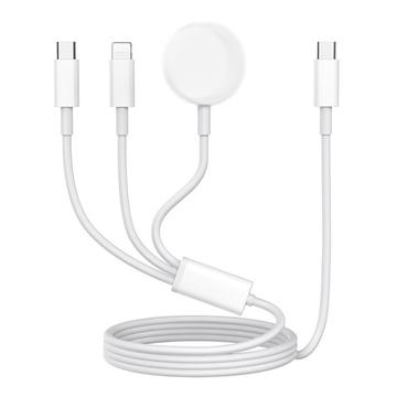 3-in-1 USB-C oplaadkabel naar USB-C, Lightning, Apple Watch draadloze oplader - 1m