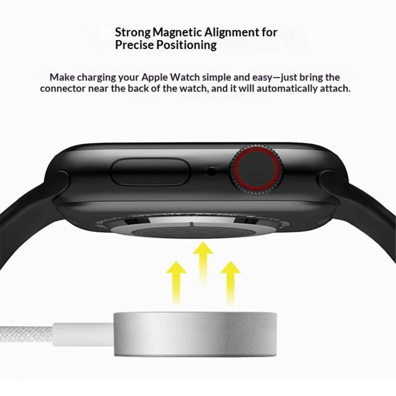 Het magnetische oplaadontwerp zorgt voor een moeiteloze uitlijning met compatibele apparaten. Plaats je Apple Watch gewoon op de oplader en hij klikt vast in de juiste positie, voor een stabiel contact en efficiënte stroomoverdracht.