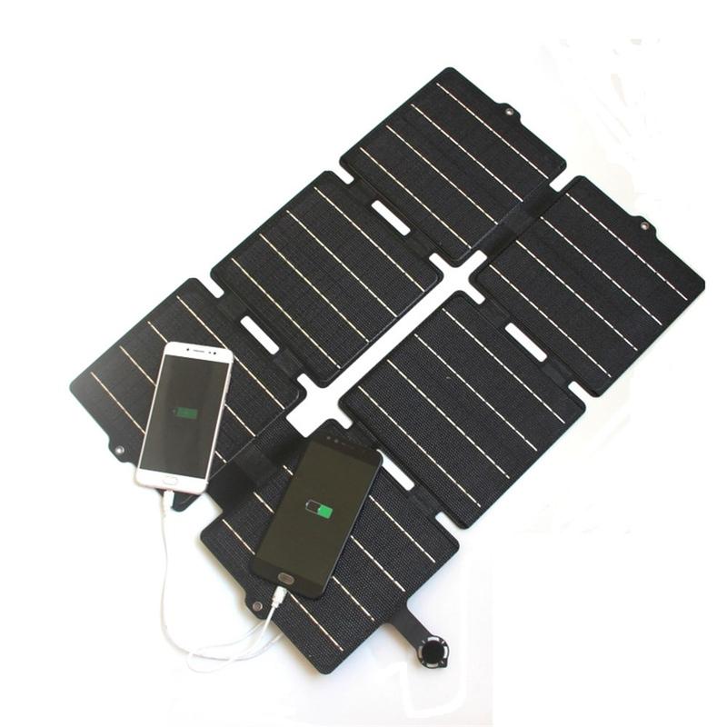 30W opvouwbare zonnelader met dubbele USB- en DC-uitgang - zwart