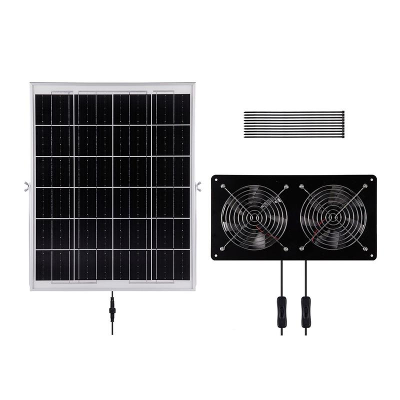 - Ventilatie op zonne-energie: monokristallijn paneel van 30W levert 12 V-uitgang voor luchtstroom overdag