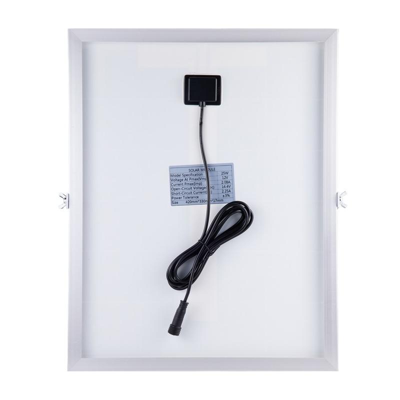 - Duurzame constructie van het zonnepaneel: 3,2 mm gehard glas + frame van aluminiumlegering (17 mm dik)