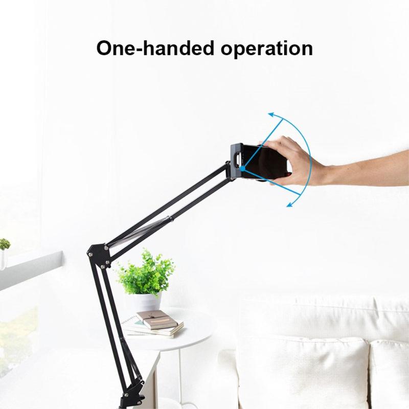 Met de verstelbare lange arm kun je de hoogte, afstand en hoek vrij aanpassen, waardoor het ideaal is voor het bekijken van video's, videogesprekken, lezen of browsen zonder handen.