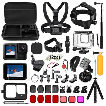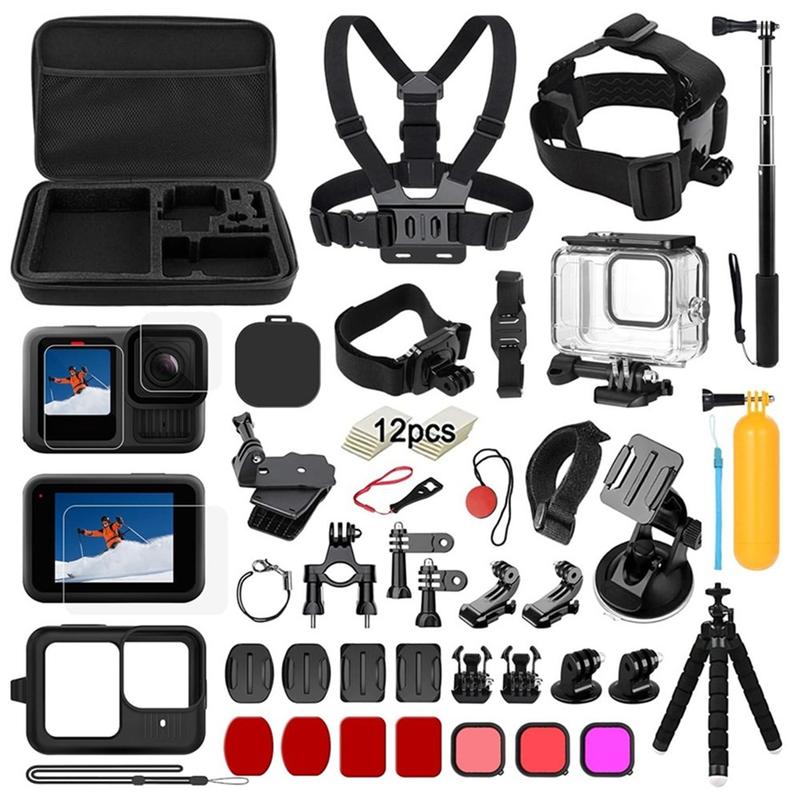 39-in-1 Accessoireset voor GoPro Hero13 Black - Waterdichte behuizing, borst- en hoofdband, selfie-stick, bevestigingen + 9H-schermbeschermers