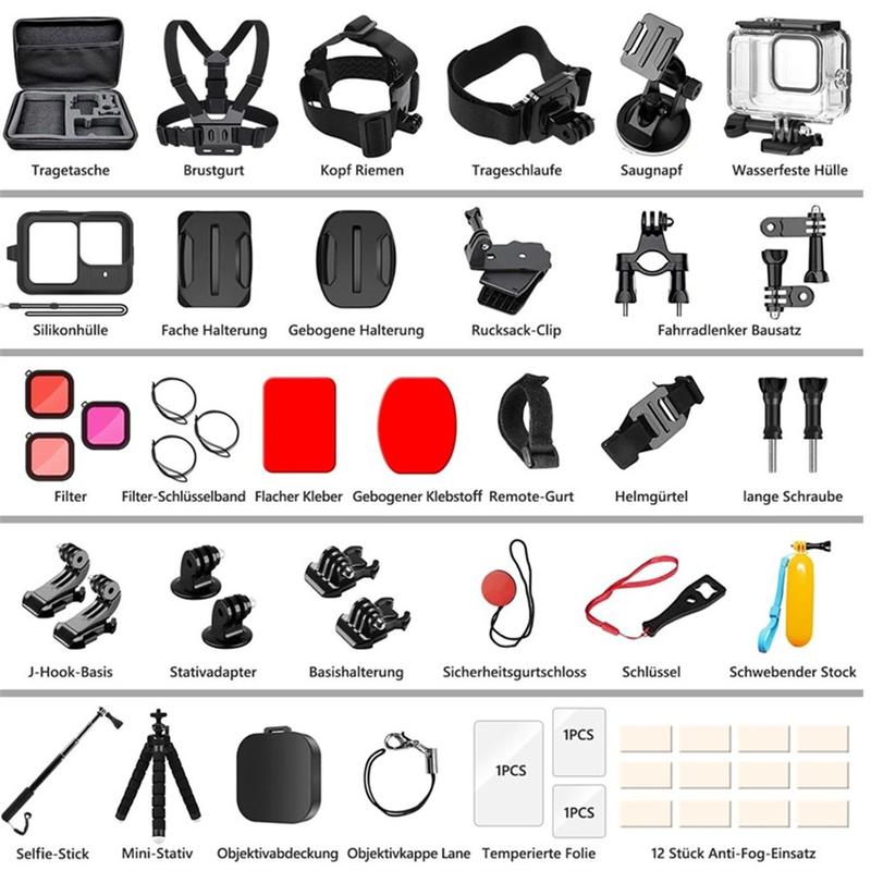 Met deze kit heb je een kant-en-klare opstelling voor meerdere filmscenario's zonder dat je apart accessoires hoeft te kopen. Je krijgt praktische mounts voor actiebeelden, flexibele gereedschappen voor creatieve hoeken en beschermende elementen die je GoPro na verloop van tijd in betere conditie houden. Ideaal voor beginners en ervaren gebruikers die een veelzijdige set in één pakket willen.