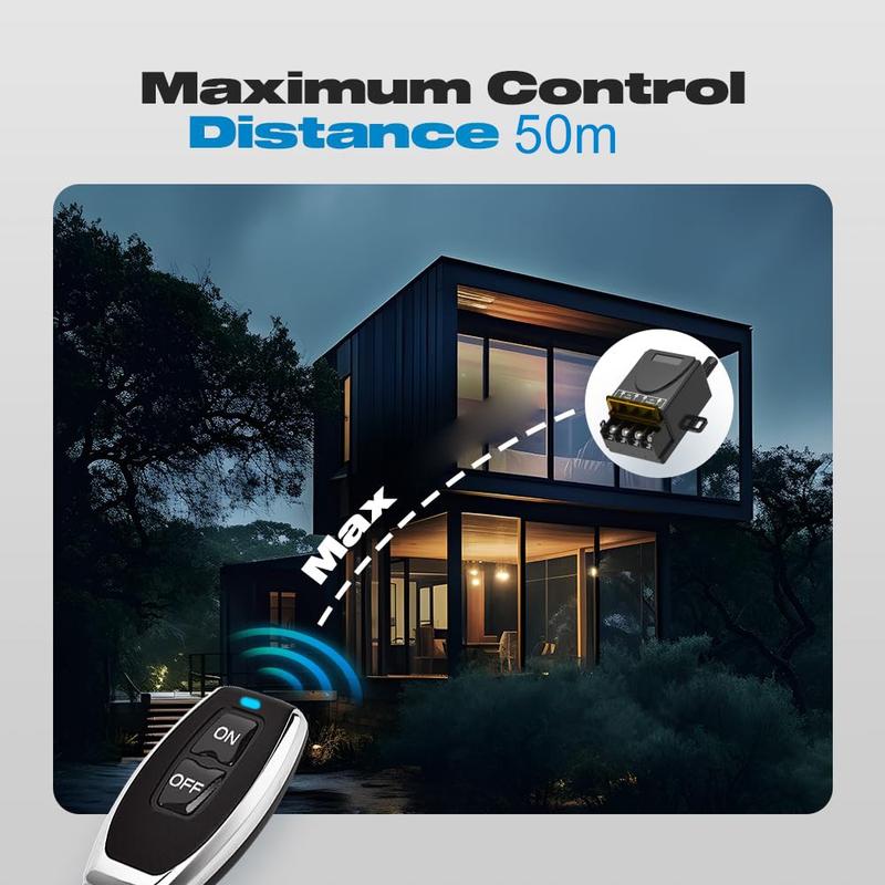 Met vier werkmodi - kortstondig, zelfvergrendelend, vergrendelend en vertraagd - kan de schakelaar worden aangepast aan verschillende taken, van eenvoudige lichtschakeling tot meer geavanceerde besturingslogica. Het 433MHz RF-signaal zorgt voor een stabiele werking tot 50 m in open omstandigheden en kan muren, deuren en vloeren effectiever doordringen dan op infrarood gebaseerde afstandsbedieningen.