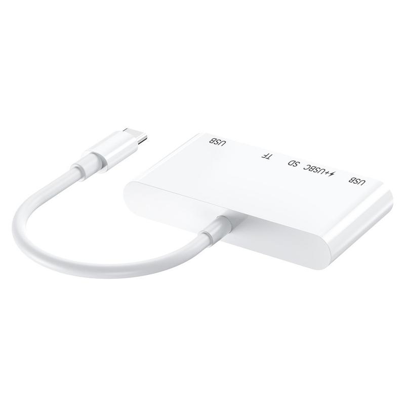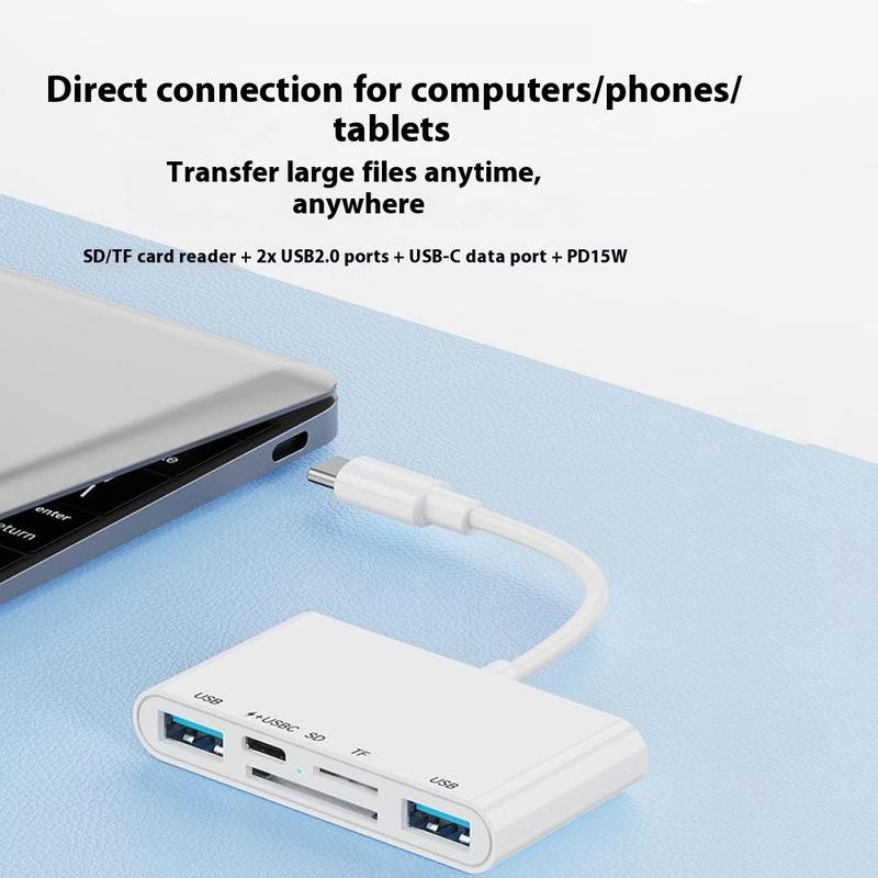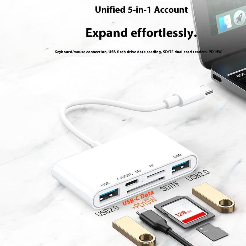 5-in-1 USB-C OTG-adapter - USB-C hub met Dual USB 2.0, 15W PD opladen en SD/TF kaartlezer voor iPhone, MacBook en USB-C apparaten