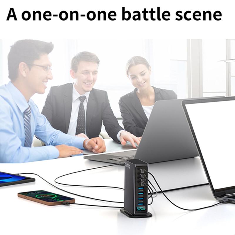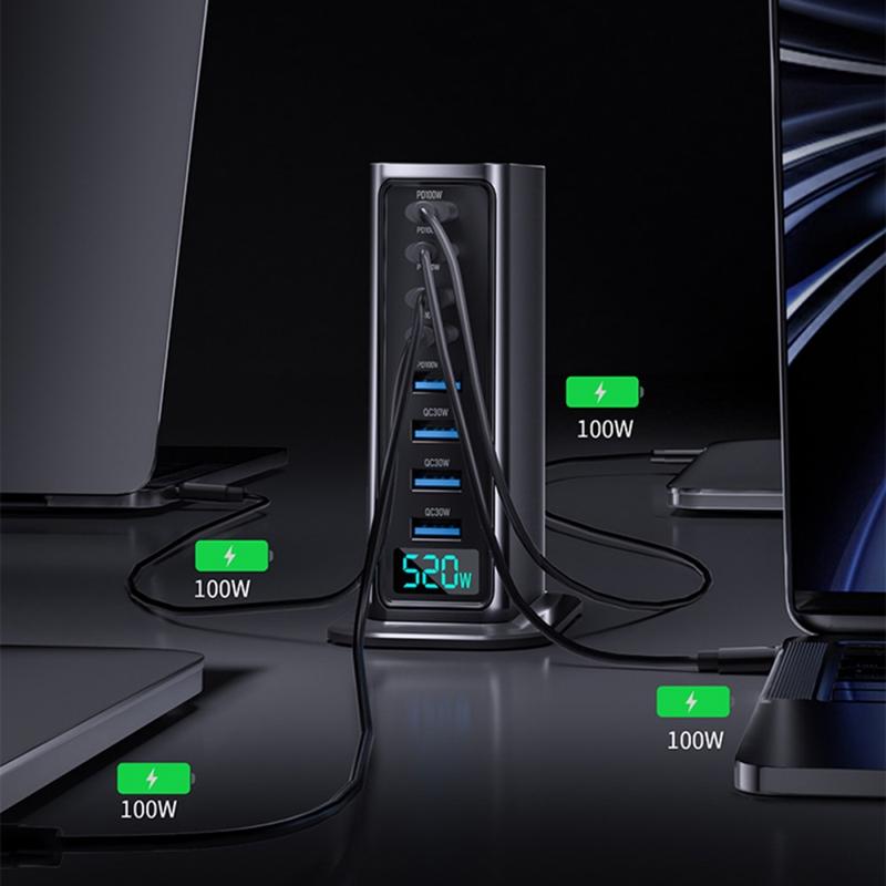 Laad je hele set-up op via één krachtige hub. Dit 520W GaN 5.0 desktop oplaadstation is gemaakt voor intensief gebruik van meerdere apparaten en biedt 8 poorten (4x USB-C + 4x USB-A) en een digitale real-time vermogensweergave zodat je de uitvoer in één oogopslag kunt controleren. Het is ideaal voor het voeden van laptops, tablets, telefoons, koptelefoons, gamecontrollers, camera's en powerbanks - tegelijkertijd - terwijl je je werkruimte netjes houdt en de kabelchaos onder controle. Dankzij de AI-temperatuurbewaking en meerlaagse veiligheidsvoorzieningen kun je snel en stabiel opladen zonder je gemoedsrust te verliezen.