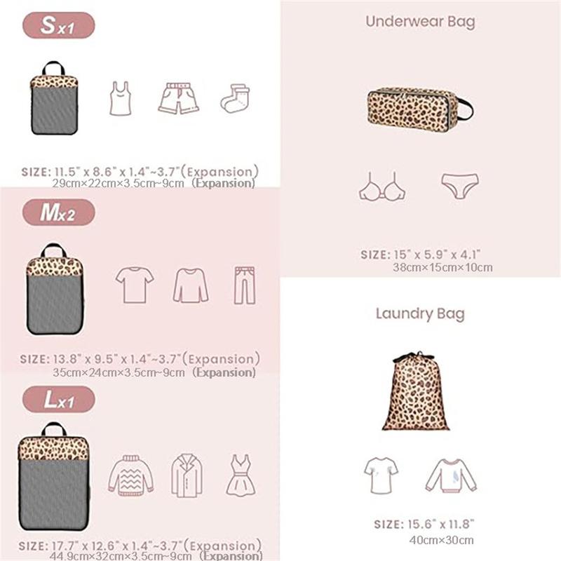 6-delige reisset met luipaardprint - ruimtebesparende compressietassen voor kleding en toiletartikelen