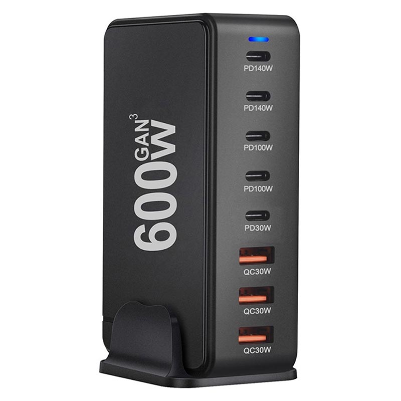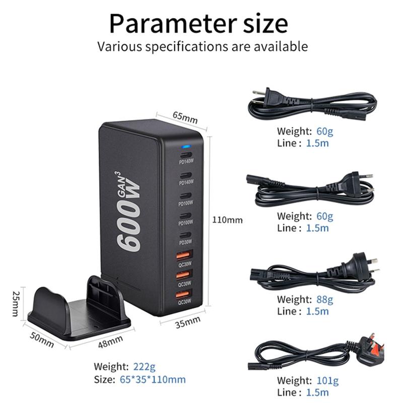 600W GaN Desktop Oplaadstation - 8 poorten (5x USB-C + 3x USB-A) PD3.1 snelle oplader, tot 140W USB-C, intelligente stroomverdeling