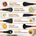 Nylon keukengerei van hoge kwaliteit zoals dit kan temperaturen tot 240°C aan, waardoor het veiliger is voor kookgerei met antiaanbaklaag dan metalen gereedschap - en veel hittebestendiger dan standaard plastic lepels.
