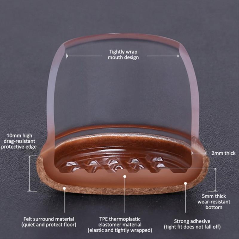De combinatie van hoogwaardig TPE en een glad vilten kussen zorgt voor langdurige prestaties. De hoezen kunnen gemakkelijk om stoelpoten worden gewikkeld en bieden uitstekende demping.