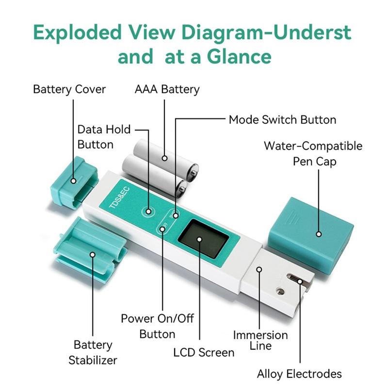 Compact, lichtgewicht en gemakkelijk mee te nemen, de tester past gemakkelijk in je zak of tas. Perfect voor thuisgebruik, reizen, aquaria, hydrocultuur, filtratietests en nog veel meer.