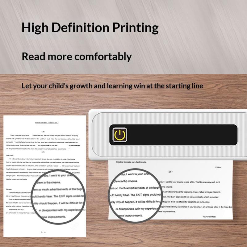 Print documenten, notities, etiketten en studiemateriaal nog eenvoudiger met de draagbare A4B A4-thermische printer. Deze compacte, inktloze printer is ontworpen voor gebruik thuis, op kantoor en tijdens het studeren, en combineert Bluetooth-connectiviteit, een afdrukscherpte van 200 dpi en draagbaar gebruiksgemak in één praktisch apparaat. Het is een slimme keuze voor gebruikers die snel en dagelijks willen afdrukken zonder gedoe met inktcartridges, toner of logge traditionele printers.