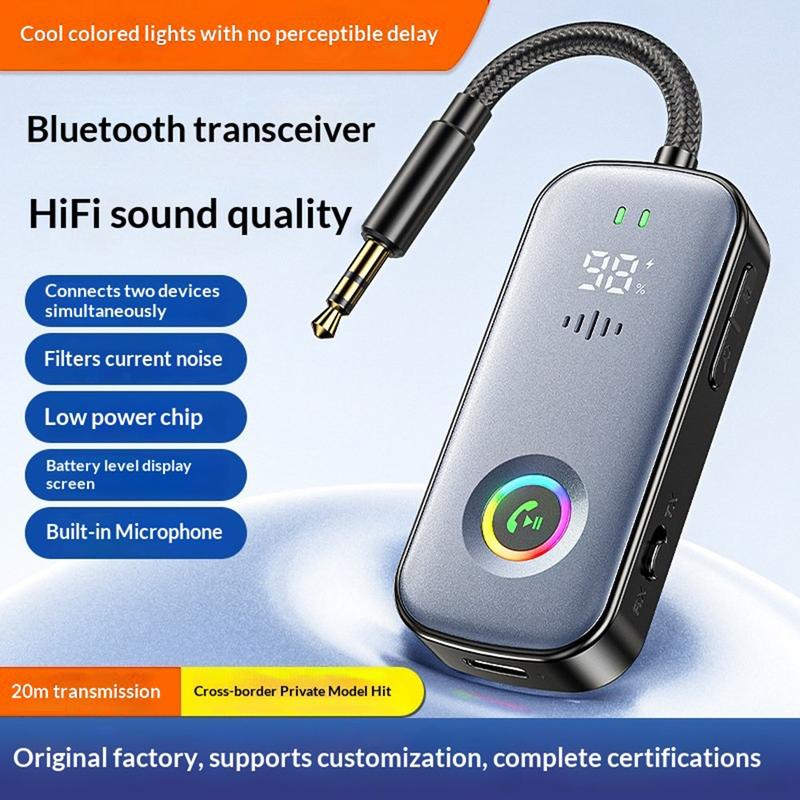 A6 Pro Bluetooth-audio-ontvanger en -zender voor auto's / Bluetooth 5.2 AUX-adapter met RGB-verlichting