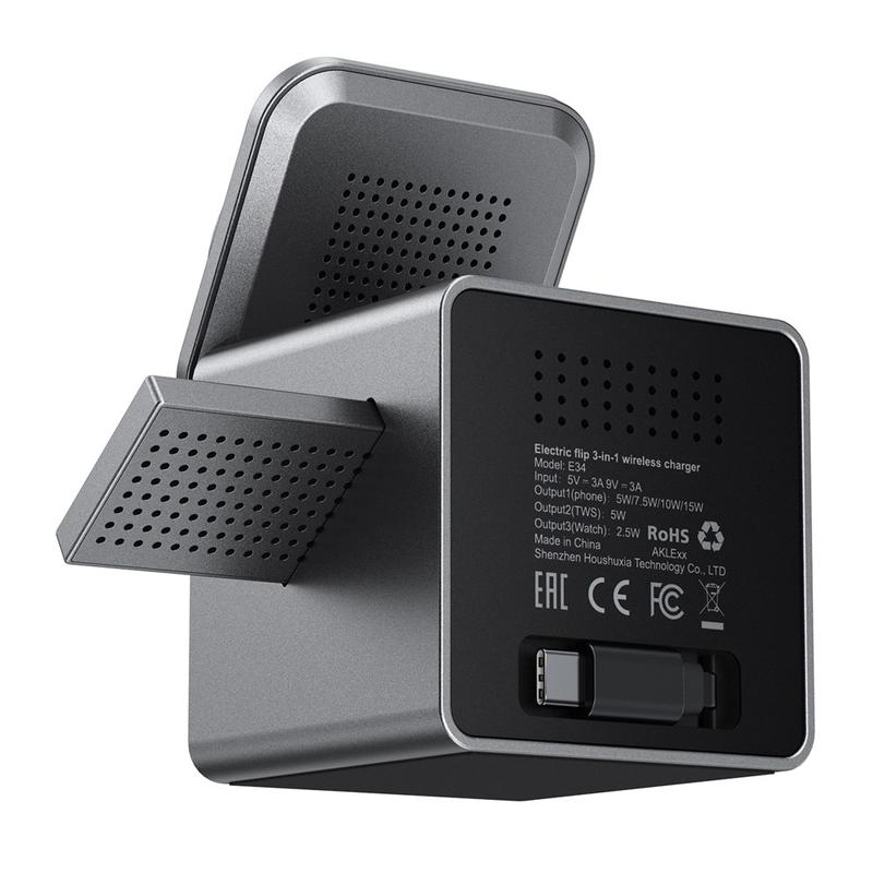 De ACEFAST E34 is een eersteklas 3-in-1 draadloos oplaadstation dat is ontworpen om je smartphone, smartwatch en oordopjes allemaal tegelijk van stroom te voorzien. Met een innovatieve elektrische klapstandaard kun je de kijkhoek van je telefoon aanpassen tijdens het opladen, waardoor het ideaal is voor videogesprekken, streamen of gebruik op een bureau. Met ondersteuning voor snel opladen tot 15 W levert de E34 efficiënt vermogen, terwijl de ingebouwde koeling en het intrekbare kabelbeheer je werkplek netjes en veilig houden. Dit compacte en duurzame oplaadstation is de perfecte alles-in-één oplossing voor thuis, op kantoor of onderweg.