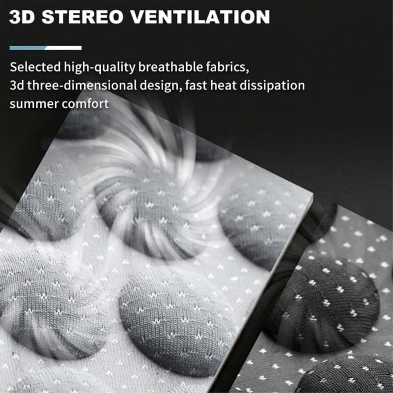 - 3D-ventilatiestoffen zijn ontworpen om microluchtkanalen te creëren, waardoor er minder warmte onder het lichaam wordt opgebouwd.