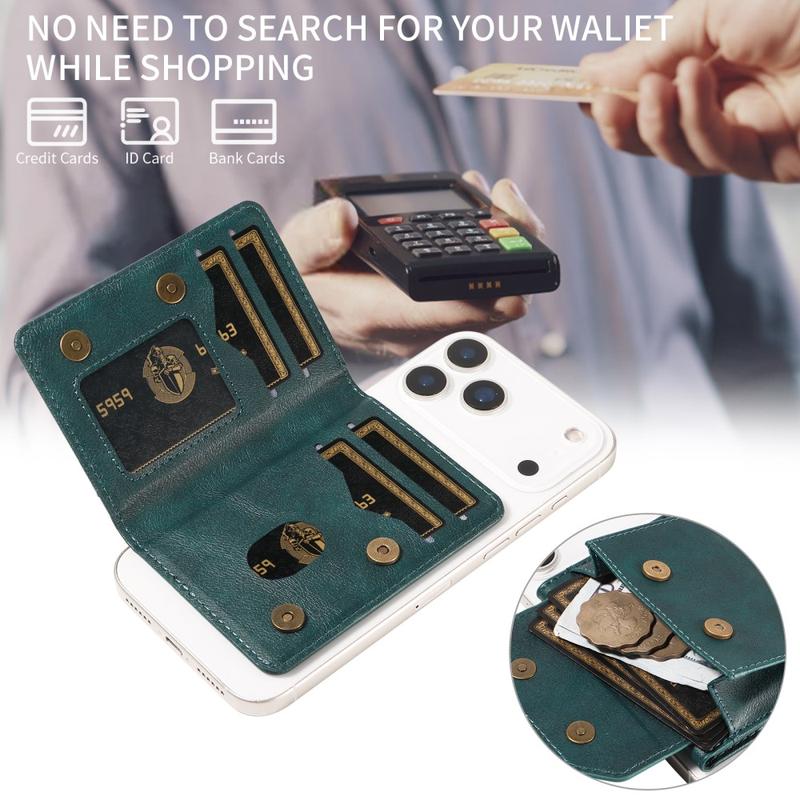 De portemonnee is gemaakt van hoogwaardig kunstleer en biedt een verfijnde look met een zacht, duurzaam gevoel. Het slanke en lichtgewicht profiel past gemakkelijk in zakken of jassen en kan ook worden gebruikt als zelfstandige portemonnee wanneer deze is losgekoppeld van de telefoon.