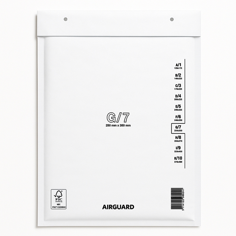 AirGuard Bubble Gevoerde Envelop G7 - Inwendige Afmetingen: 230x340mm, Externe Afmetingen: 250x350mm
