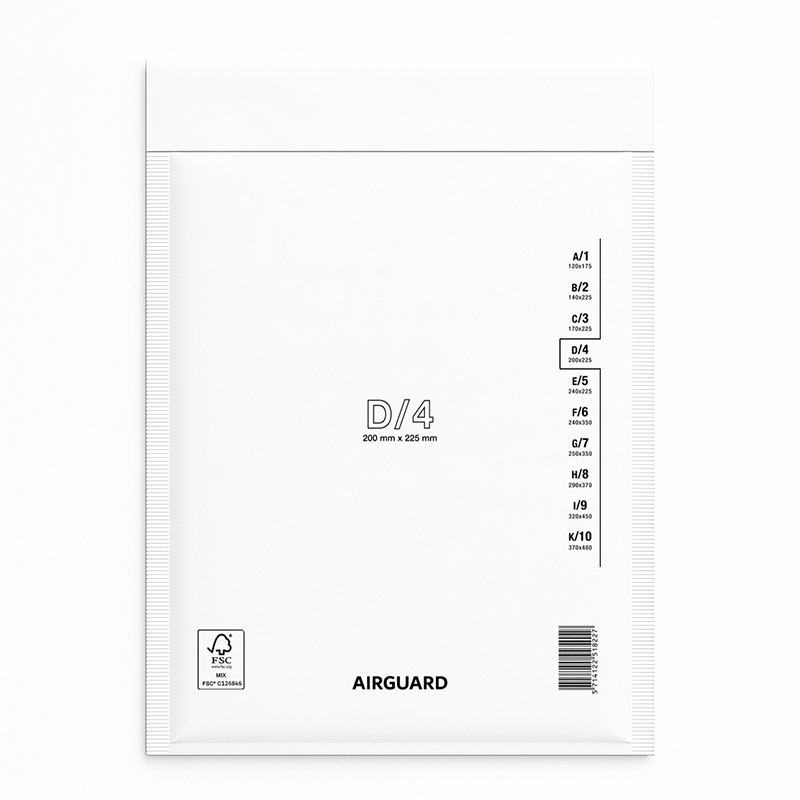 AirGuard Bubble Gevoerde Envelop D4 - Interne Afmetingen: 180x265mm, Externe Afmetingen: 200x275mm