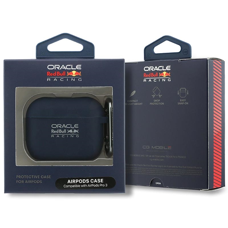 Oracle Red Bull Racing Silicone Hoesje voor AirPods Pro 3 - Lichtgewicht beschermhoes met karabijnhaak