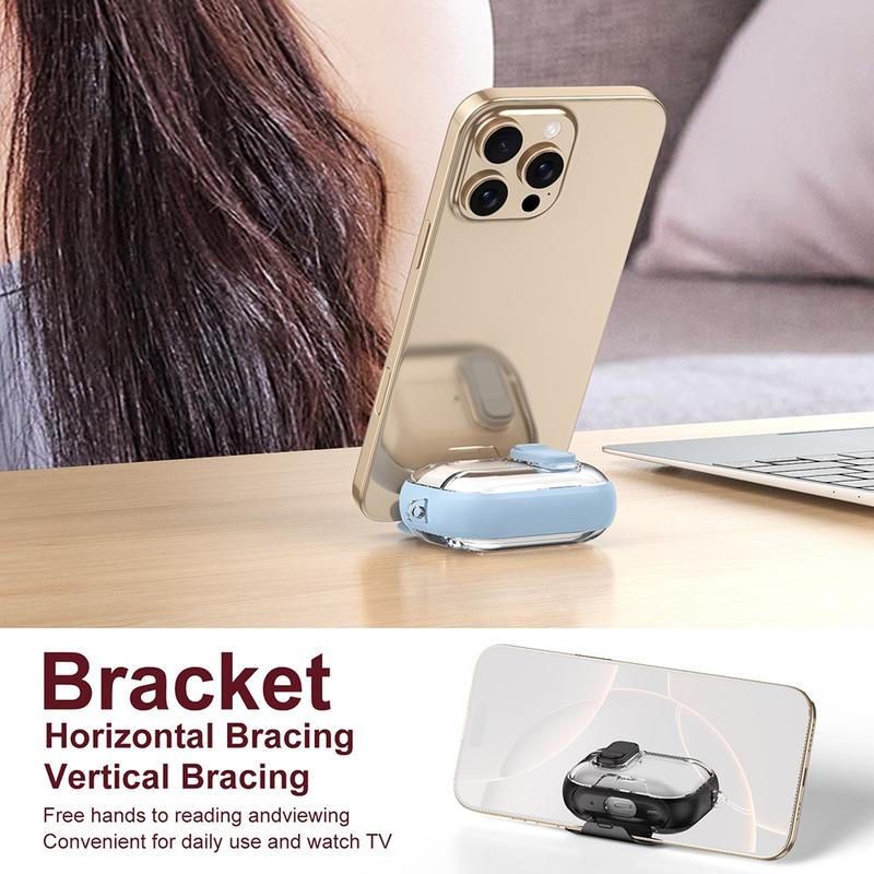 Met de ingebouwde opvouwbare standaard aan de onderkant kun je je AirPods Pro rechtop zetten voor handsfree gemak. Perfect voor het bekijken van video's, videogesprekken of om je oordopjes netjes op je bureau te houden.