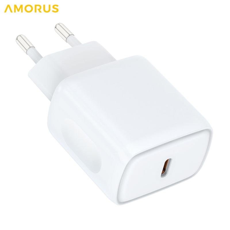 Amorus PD 20W USB-C snellader voor aan de muur – Slimme stroomadapter met PPS, brandwerend ontwerp – EU-stekker