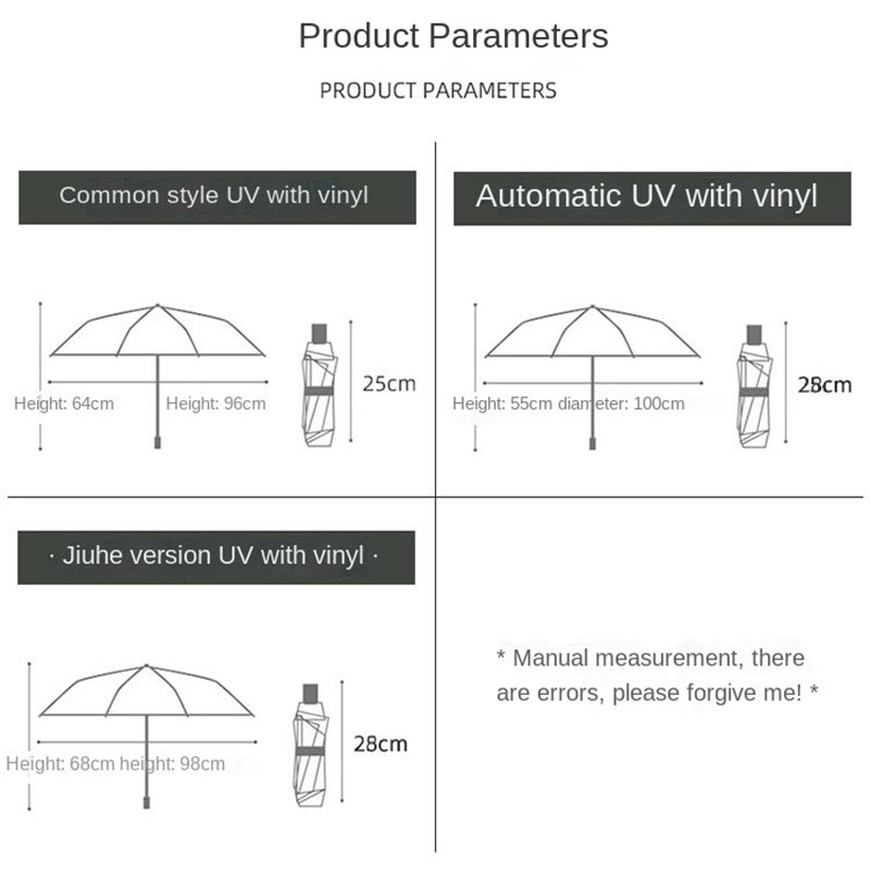 Anti-UV Compacte Opvouwbare Paraplu - Draagbare Reisparaplu Zon & Regen met 8 Ribben, Trifold Ontwerp, Opbergtas