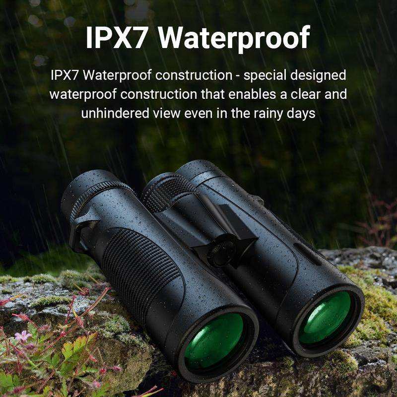 - IPX7 verrekijker is bestand tegen onderdompeling en zware regenval