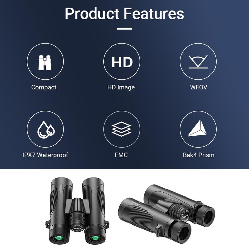 - 10x42 krachtige vergroting met helder, scherp HD-beeld