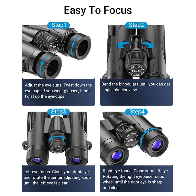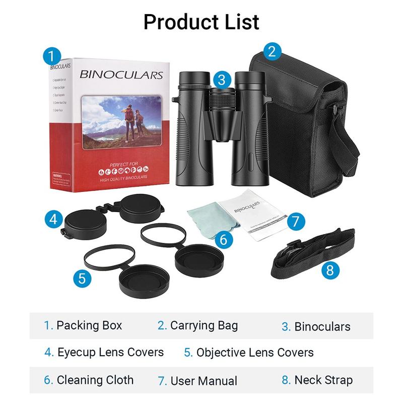 De APEXEL 10x42 HD verrekijker biedt uitzonderlijke helderheid, helderheid en duurzaamheid voor verkenningen buitenshuis. Met een grote 42 mm objectieflens, BAK4 dakkantprisma en volledig multi-coated (FMC) optiek, biedt deze verrekijker scherpe, contrastrijke beelden met uitstekende lichttransmissie - ideaal voor vogels kijken, wildobservatie, wandelen, concerten en sportevenementen.