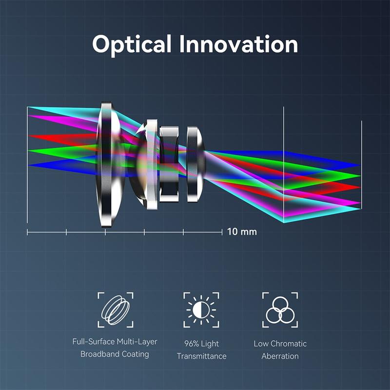 - Geavanceerde optische techniek - Meerlaagse breedband optische coating met 96% lichttransmissie minimaliseert vervorming en chromatische aberratie voor heldere, levensechte kleurenbeelden.
