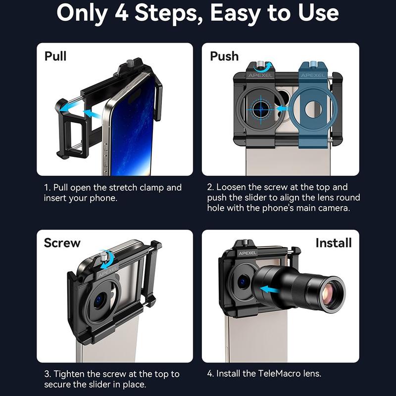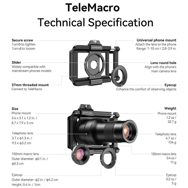 De APEXEL APL-TM6 biedt een uitstekende flexibiliteit in één compacte kit, waardoor de noodzaak voor meerdere afzonderlijke lenzen wegvalt. De combinatie van telebereik en macroprecisie maakt het geschikt voor een breed scala aan opnamescenario's, terwijl de universele clip zorgt voor eenvoudig gebruik met de meeste smartphones. Lichtgewicht, draagbaar en optisch geavanceerd: een slimme upgrade voor mobiele fotografen die meer creatieve controle willen.