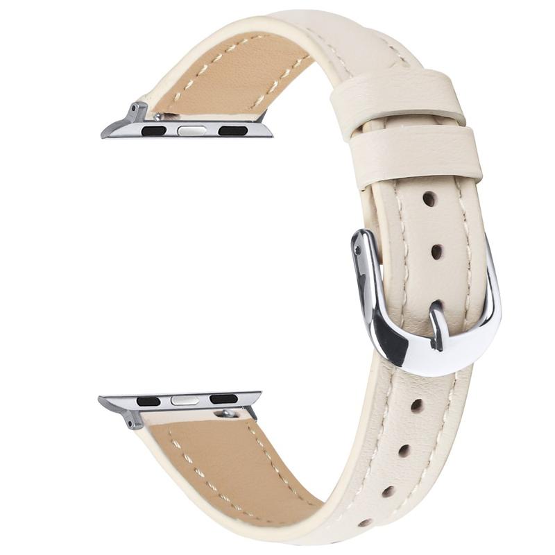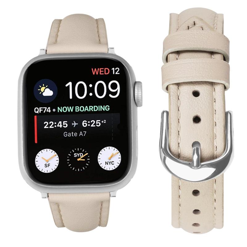 • Dunne leren band voor Apple Watch Series 11, Apple Watch Series 10, Apple Watch Series 9, Apple Watch Series 8, Apple Watch SE 3, Apple Watch SE (2022), Apple Watch Series 7, Apple Watch SE, Apple Watch Series 6, Apple Watch Series 5, Apple Watch Series 4, Apple Watch Series 3, Apple Watch Series 2, Apple Watch Series 1 - Zachte leren band met zilveren gesp