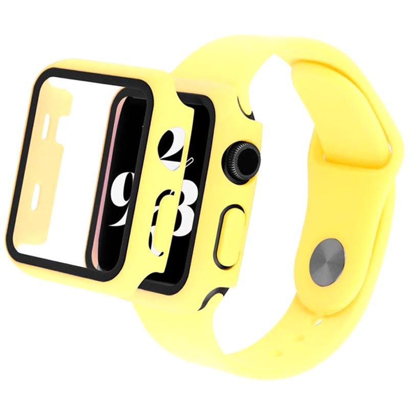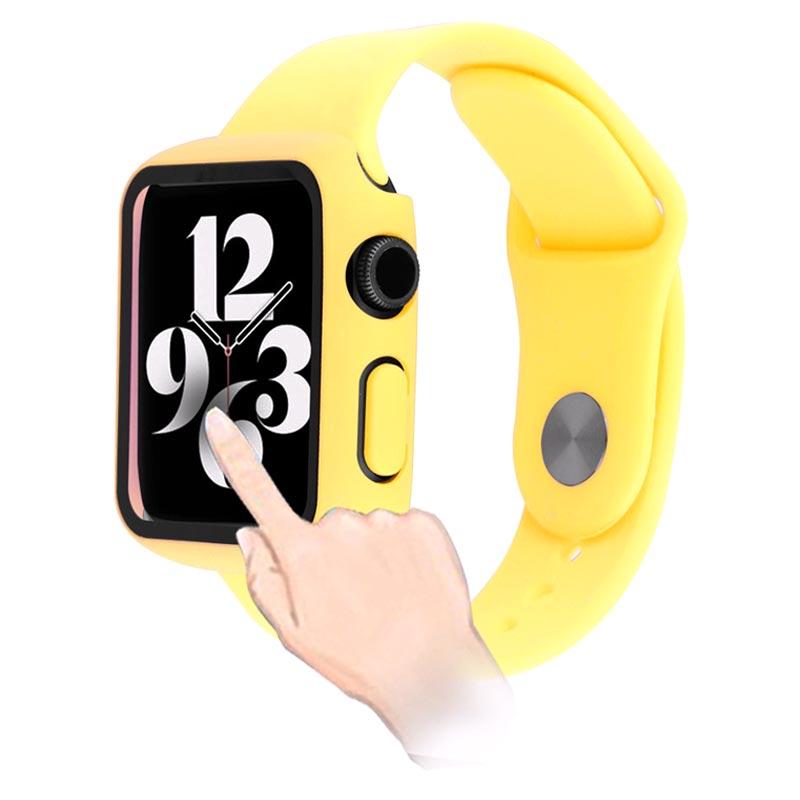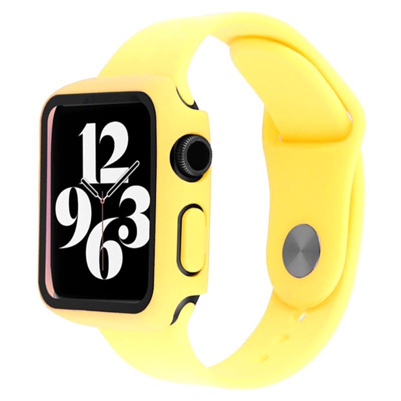 Apple Watch Series SE (2022)/SE/6/5/4 Plastic Hoesje met Glazen Screenprotector - 44mm - Geel