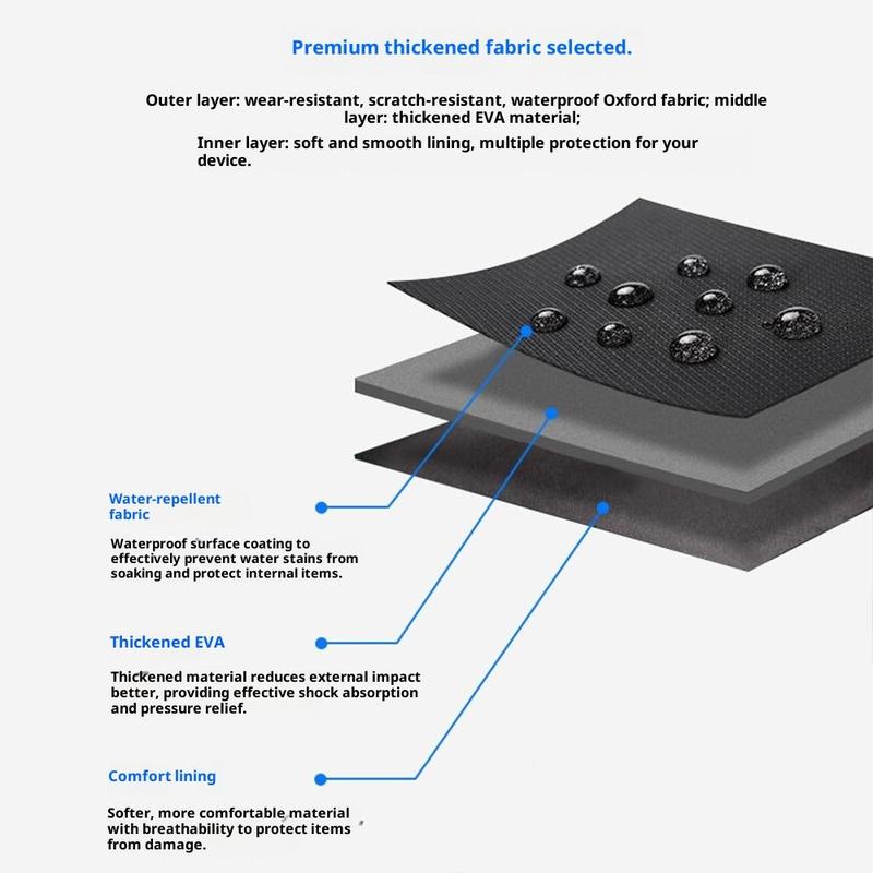 - Duurzame meerlaagse constructie - Gemaakt van waterdicht Oxford-materiaal, EVA en polyester, voor superieure bescherming tegen vallen, stof en vocht.