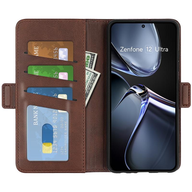 Asus Zenfone 12 Ultra Portemonnee Hoesje met Magnetische Sluiting - Kalf Textuur - Bruin