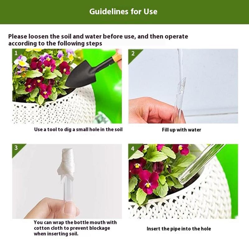 Of je nu druk aan het werk bent, op reis of gewoon een eenvoudigere plantenverzorgingsroutine wilt, deze gietbollen zorgen voor een consistente hydratatie. Ideaal voor kamerplanten, balkonplanten, bloemen en kleine tuinpotten.