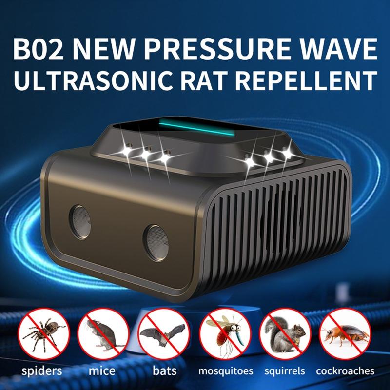De B02 ultrasone knaagdierverjager biedt een krachtige, veilige en langdurige ongediertebestrijding door middel van geavanceerde ultrasone en stroboscoopechnologie - ideaal voor iedereen die op zoek is naar een milieuvriendelijk, onderhoudsvrij alternatief voor chemische ongediertebehandelingen.