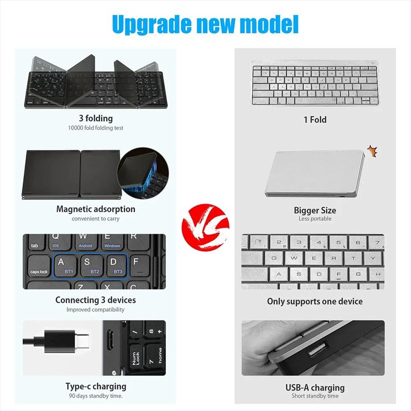 Drievoudig opvouwbare Bluetooth-toetsenborden zijn populair omdat ze een betere draagbaarheid combineren met een groter typoppervlak dan veel compacte minitoetsenborden. Modellen met een numeriek toetsenblok zijn vooral handig voor productiviteitstaken, omdat het invoeren van getallen veel sneller en comfortabeler kan. Bluetooth-toetsenborden voor meerdere apparaten komen ook steeds vaker voor, aangezien steeds meer mensen op dezelfde dag werken op telefoons, tablets en laptops. Opvouwbare ontwerpen met een magnetische sluiting helpen het toetsenbord tijdens het transport te beschermen en maken ze gemakkelijker mee te nemen in kleinere tassen.
