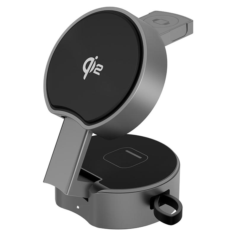 B30 3-in-1 opvouwbare magnetische snellader met Qi2 15W - Zwart / Grijs