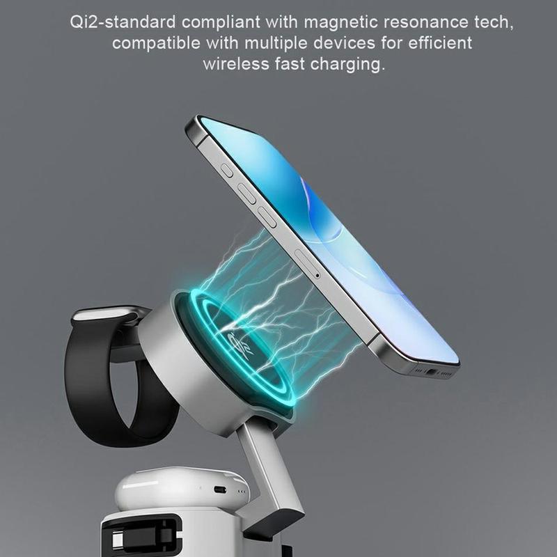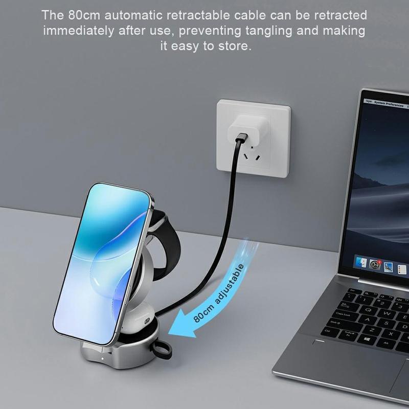 • B30 3-in-1 opvouwbare magnetische draadloze oplader - Qi2-snellaadstation van 15W met intrekbare USB-C-kabel van 80 cm voor telefoon, horloge en oordopjes