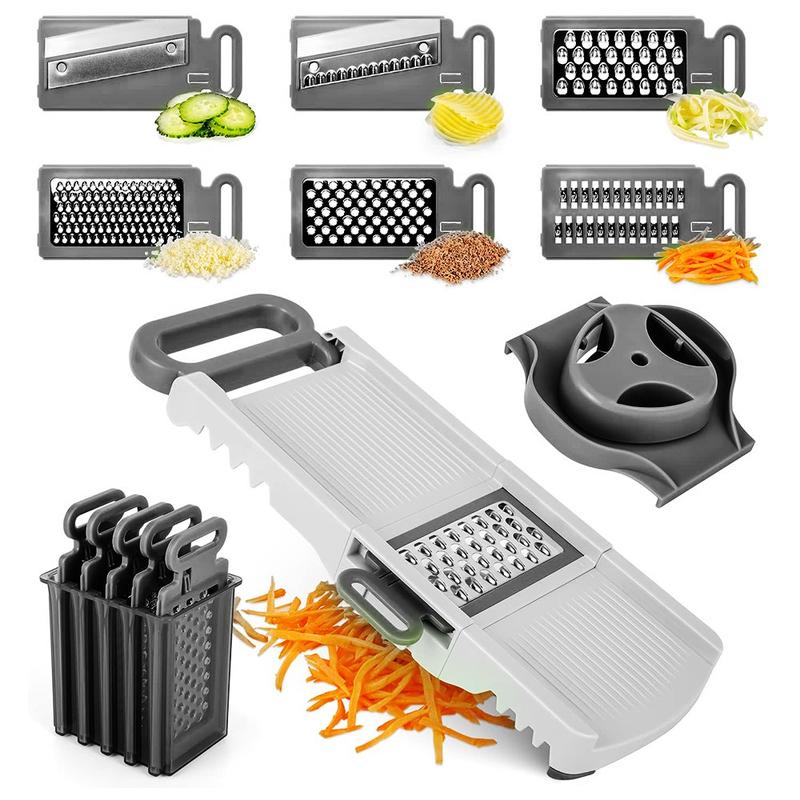 B837-B 6-in-1 Mandoline Snijder / Rasp - Roestvrij Stalen Blad Groente & Fruit Snijder