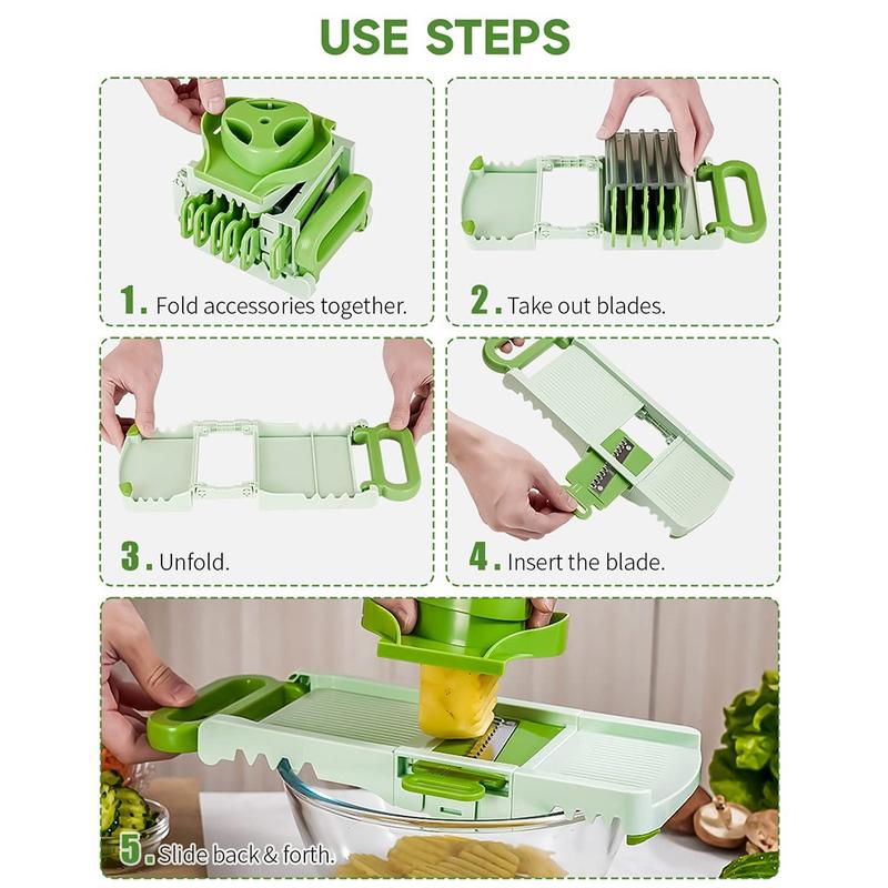 Deze mandoline snijmachine vervangt meerdere keukenapparaten door één compact, opvouwbaar apparaat. De scherpe roestvrijstalen messen, duurzame constructie en eenvoudige bediening maken het ideaal voor thuiskoks die elke dag snel, consistent en veilig willen snijden. Gemakkelijk schoon te maken, gemakkelijk op te bergen en gemaakt voor langdurig gebruik, is het een betrouwbare toevoeging aan elke keuken.