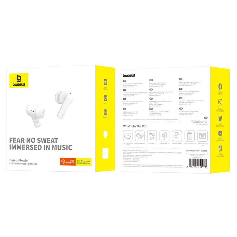 Baseus Bowie E19 True Wireless oortelefoon - Bluetooth 5.3 in-ear hoofdtelefoon met 12mm drivers, ENC ruisonderdrukking en 33 uur speeltijd